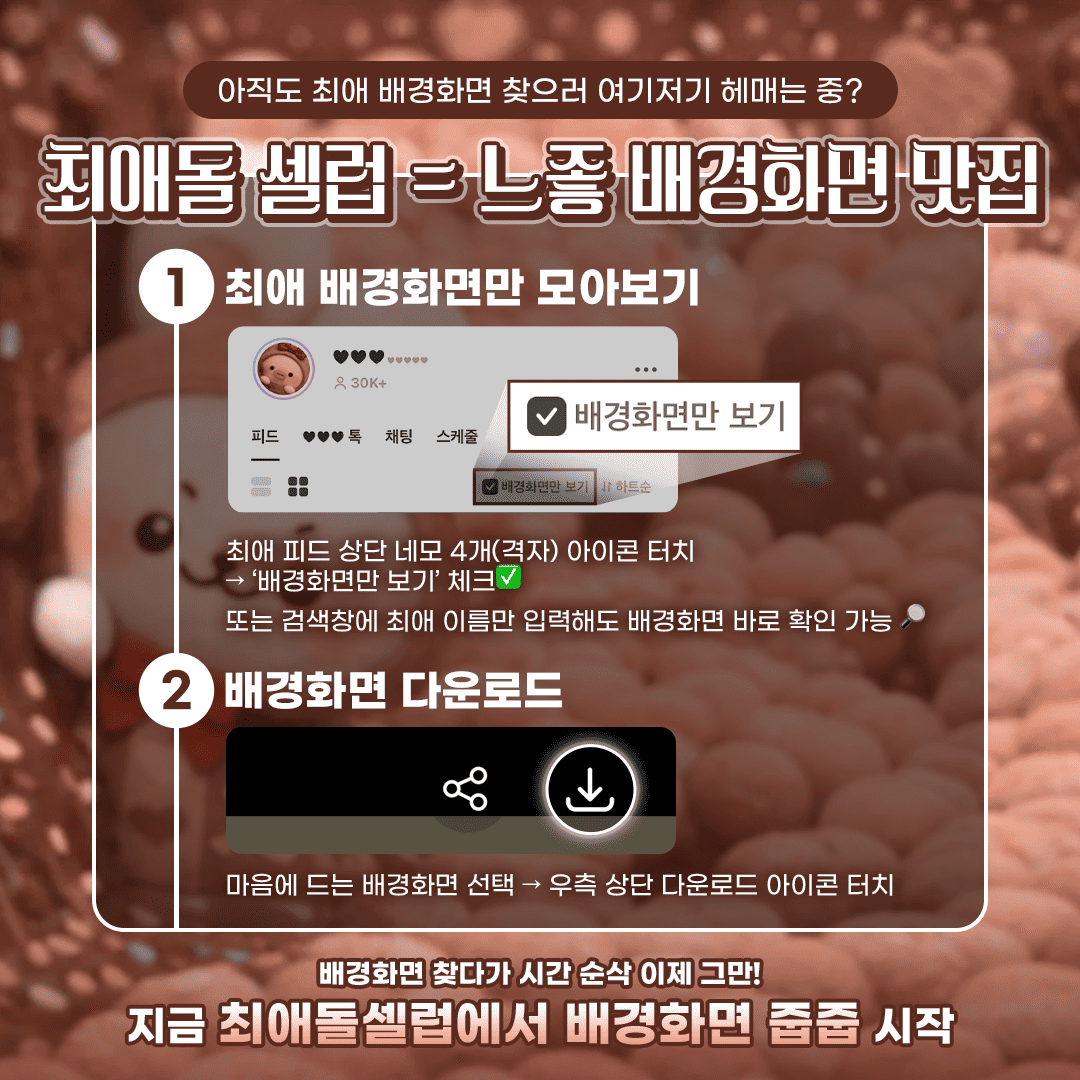 - 최애돌셀럽에서 마음에 드는 배경화면을 다운로드 후 배경화면에 적용