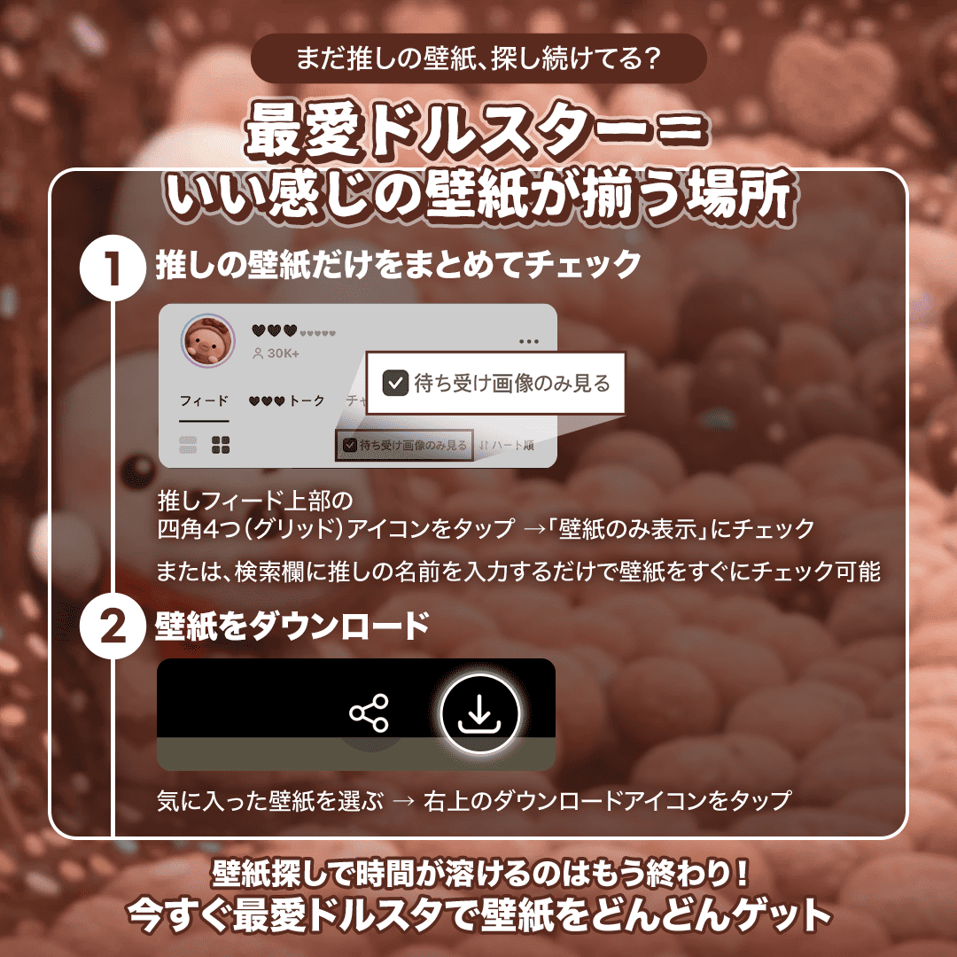 1. 最愛ドルスターでお気に入りの壁紙をダウンロードしてスマホの壁紙に設定します。